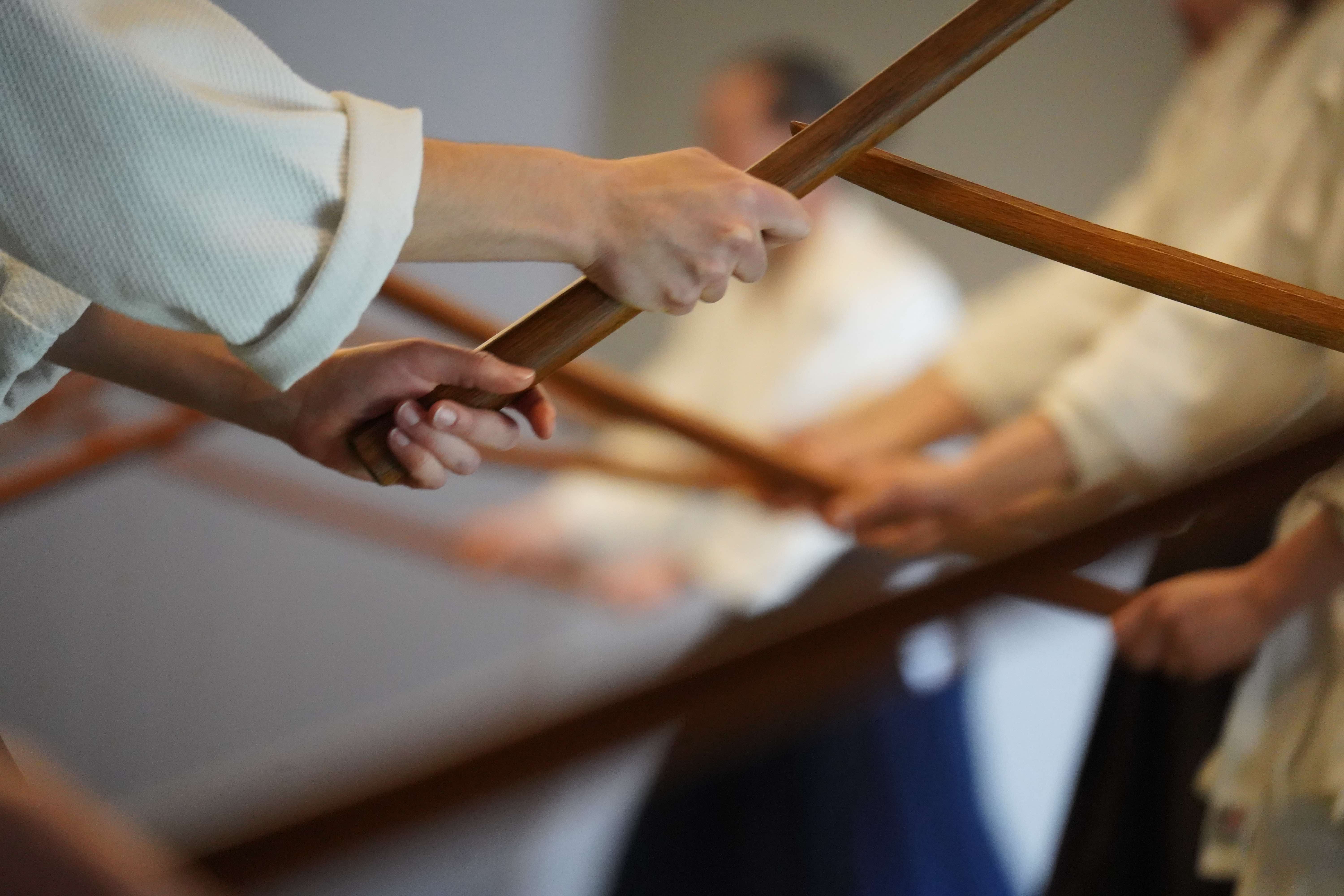 Yen Lee: I remember the image of swords being picked up from the floor in front of each body as we stood in a circle of five or six. The whole event was simple and naturally unfolding, as if nothing required any extra effort…Then we left the practice for whatever came next; some biked away with the swords attached to their bikes or tucked into their backpacks.