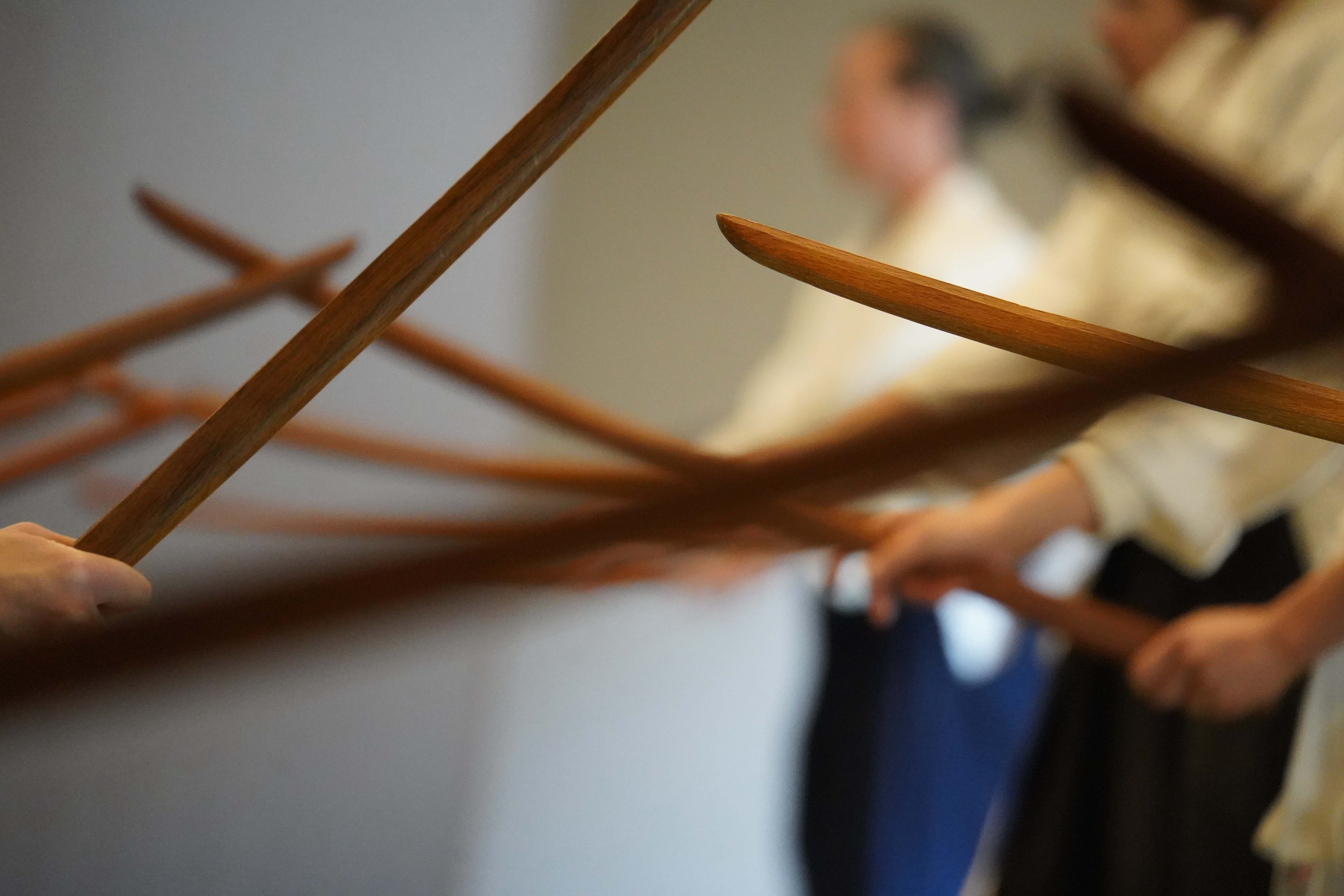 David Kummer: Listening to you speak about the calm and welcoming atmosphere, I realise that arriving at Wiesenburg[2] is already a grounding experience in itself. It feels like entering a safe universe for creation, research, and being. Tea and conversation are part of the arrival, taking time to land together before the practice. I took several Open Practice Sessions over the years: some sessions took place indoors, others outside at Humboldthain park[3] with swords under the trees. I remember the large trees and the soothing, detailed quality of the practice. It felt like working with oneself while always remaining connected to the others.
